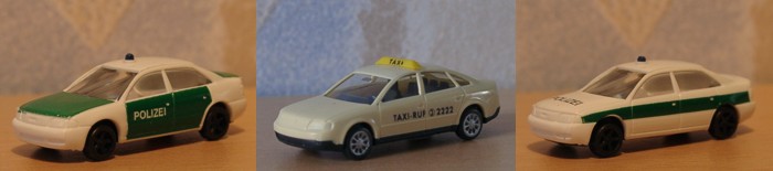 Dieser Massstab, wieder sehr gering mit Audimodellen frequentiert, entspricht der Modellbahn Spur N und wird hergestellt von den Firmen Rietze, Wiking und Busch.