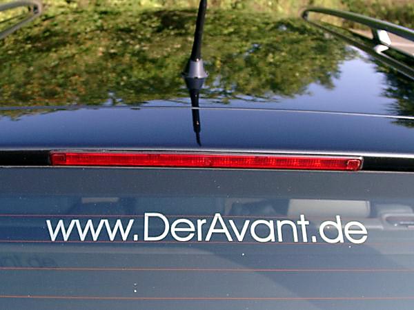 Mit den Aufklebern könnt Ihr nun auch zeigen, dass schöne Kombis eben Avant heißen. Durch freundliche Unterstützung der Firma Porrey Werbung+Druck kann ich Euch diese zum Selbstkostenpreis anbieten. Zur Auswahl stehen folgende Modelle: NEU!! - nun auch das DerAvant.de - Logo als Aufkleber Nachdem ich seit geraumer Zeit das Logo mit der Silhouette des 4B Avant als Logo einsetze, kann ich Euch dies nun auch als Aufkleber anbieten. Es gibt ihn wie gewohnt (Front links, Heck rechts), oder aber auch im "Set", sodass er auf beiden Seiten in Fahrtrichtung montiert werden kann.